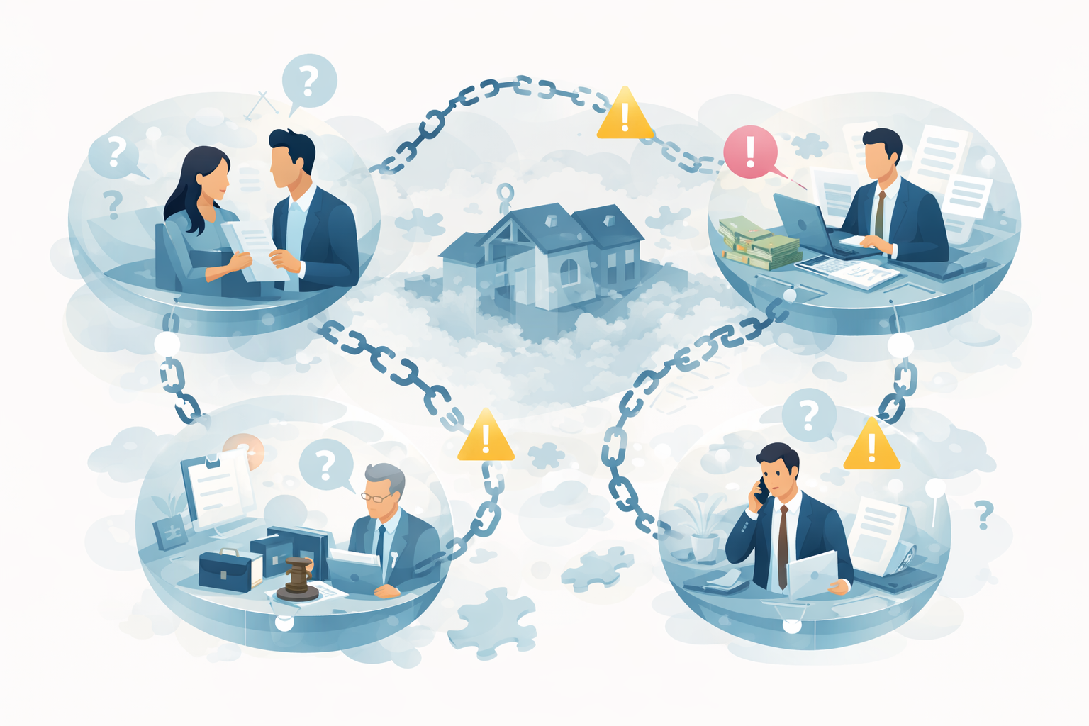 The consequences are measurable. Around one in three residential property transactions fails to complete each year. The chain itself – delays or collapses elsewhere that are not identified until late – is consistently cited as a primary factor. By the time a conveyancer learns that a linked transaction has fallen away, significant time and cost have already been incurred.